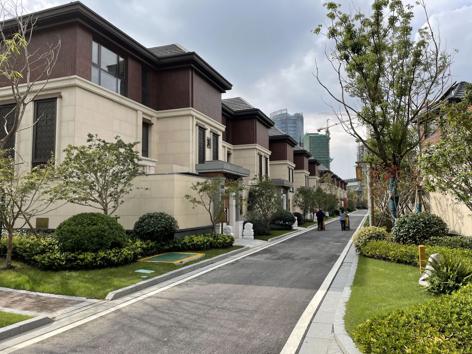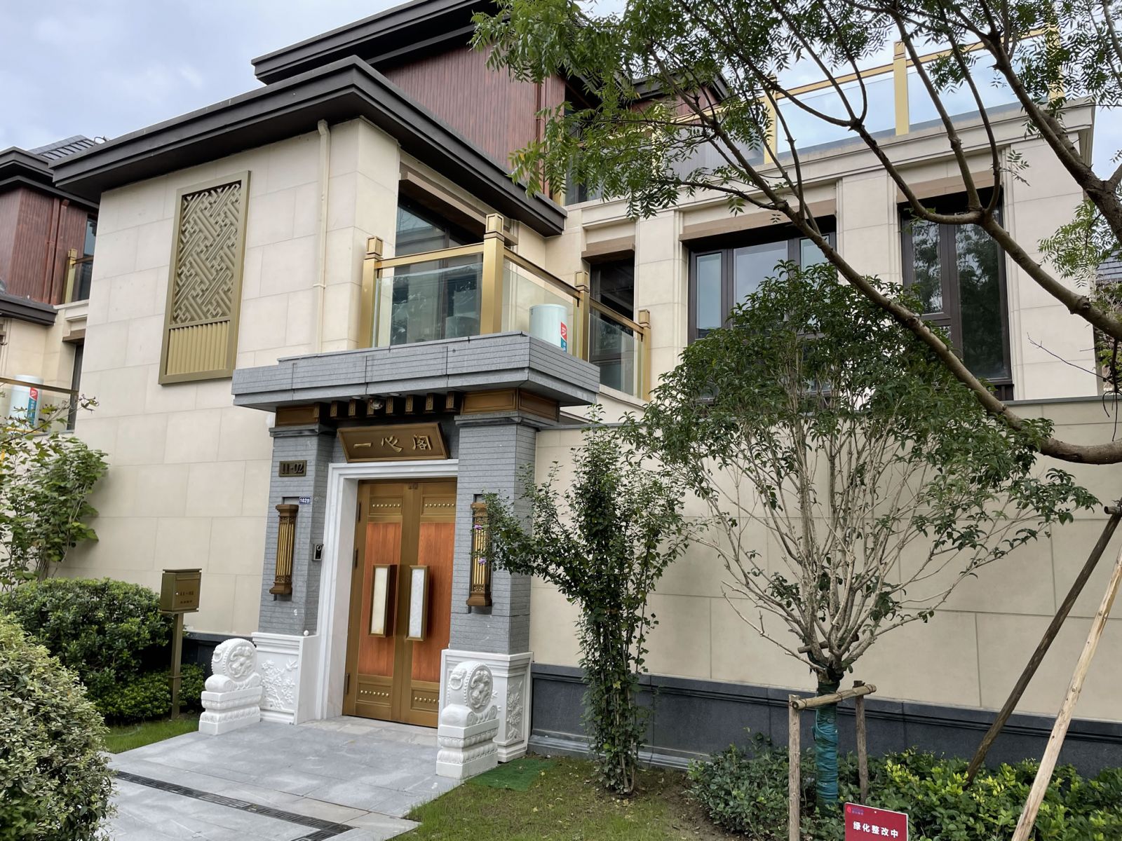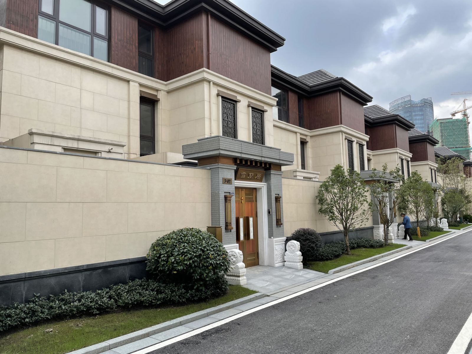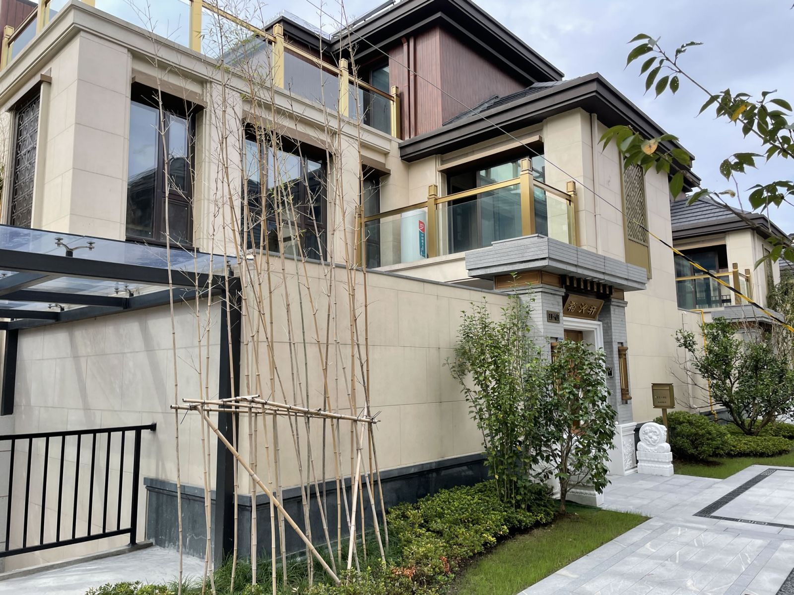 別墅外立面使用協進600*900葡萄牙米黃陶瓷薄板外飾面的保溫一體板。