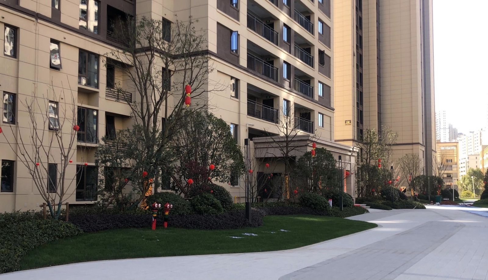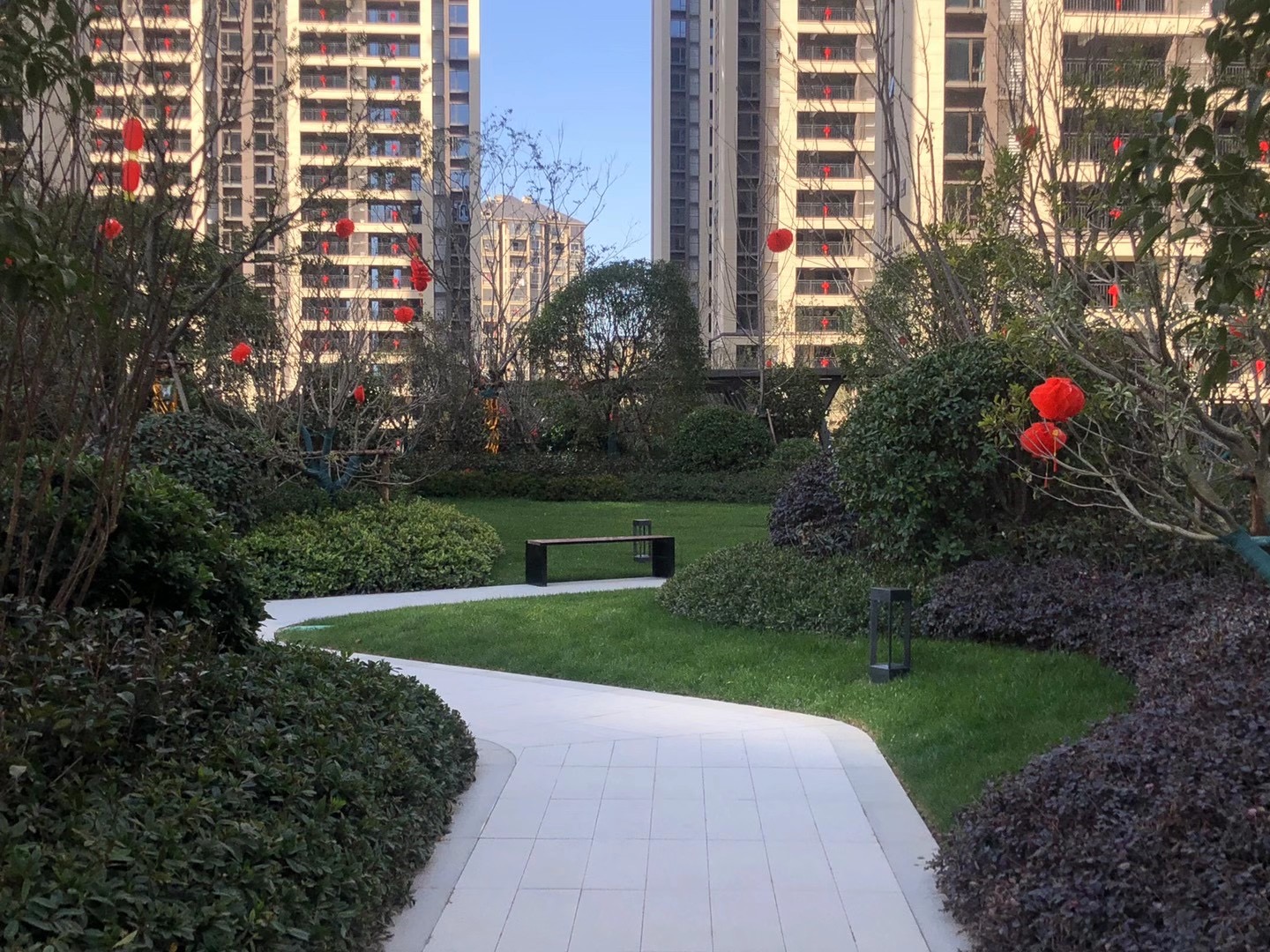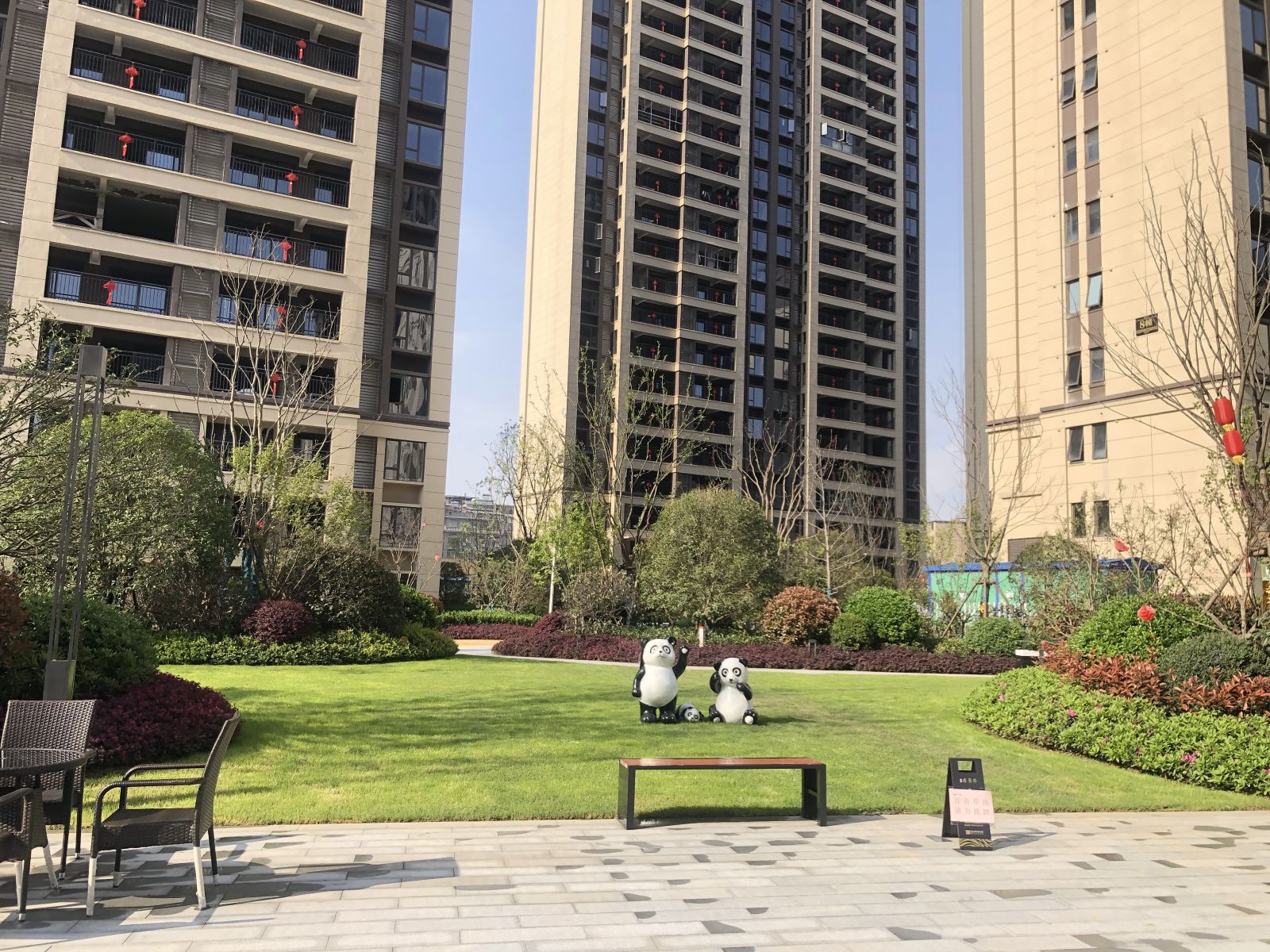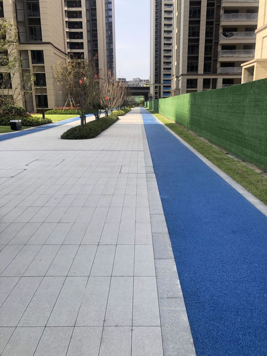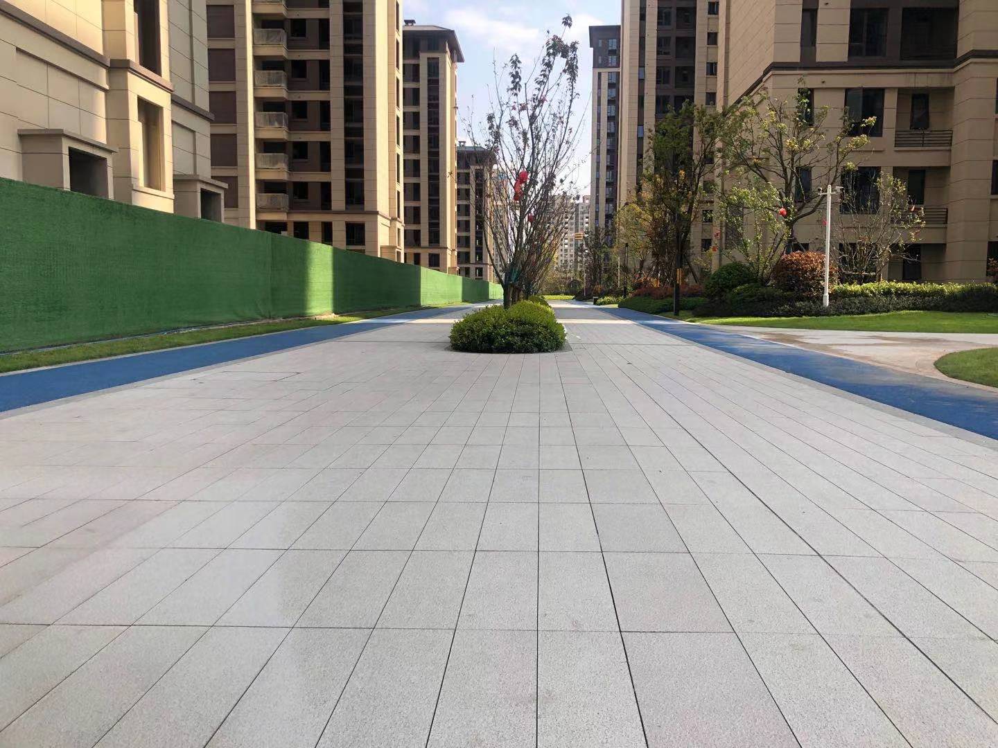 小區園林使用協進200*600陶瓷地鋪石搭配鋪貼,顏色統一,效果簡約整潔。