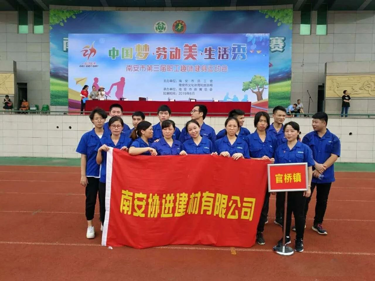 6月14日,由南安市總工會、南安市文化體育和旅游局主辦的,旨在豐富職工業余文化生活,增強職工健身意識,提升職工隊伍身體素質的第三屆“中國夢、勞動美、生活秀”職工趣味健身運動會在市體育中心田徑場勝利舉行。來自各鄉鎮(街道)工會、系統(產業)工會所屬機關、企事業職工等的40支代表隊參加了比賽。協進公司工會代表隊代表官橋鎮總工會以兩個三等獎的優異成績為官橋鎮贏得榮譽,為協進公司增添光彩。