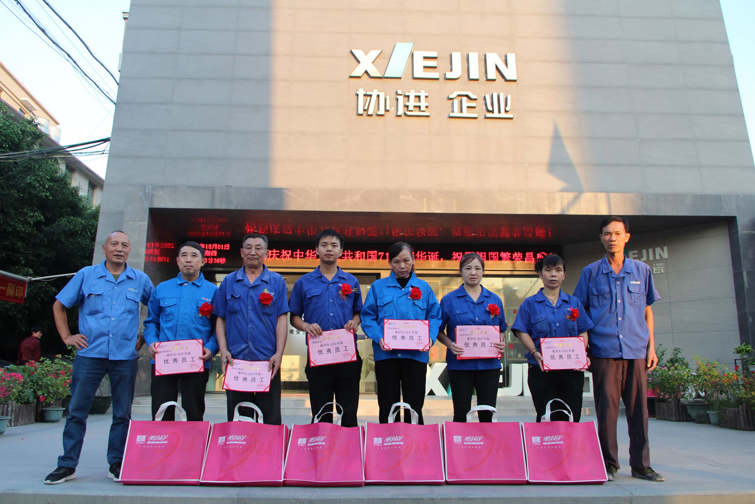 王少華總經(jīng)理等公司領(lǐng)導(dǎo)為34名2020年度優(yōu)秀員工頒發(fā)獎(jiǎng)狀獎(jiǎng)品,借此感謝全體協(xié)進(jìn)人一年來(lái)的辛勤勞動(dòng),同時(shí)祝愿?jìng)ゴ蟮淖鎳?guó)繁榮昌盛、國(guó)泰民安。