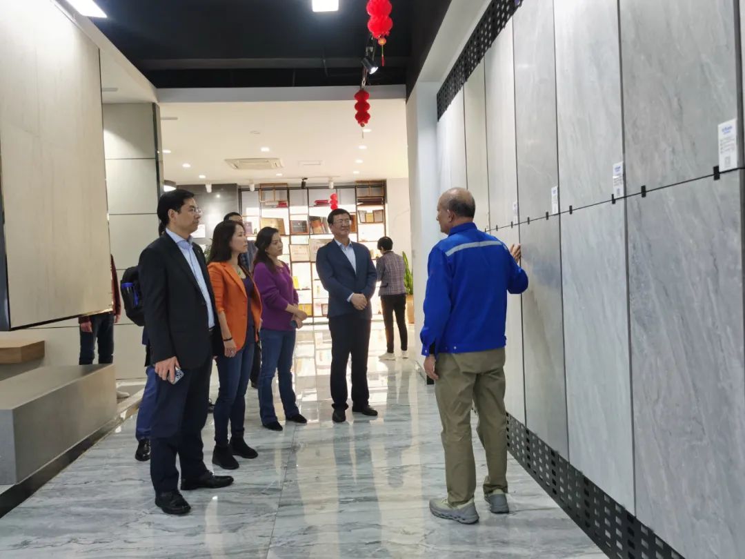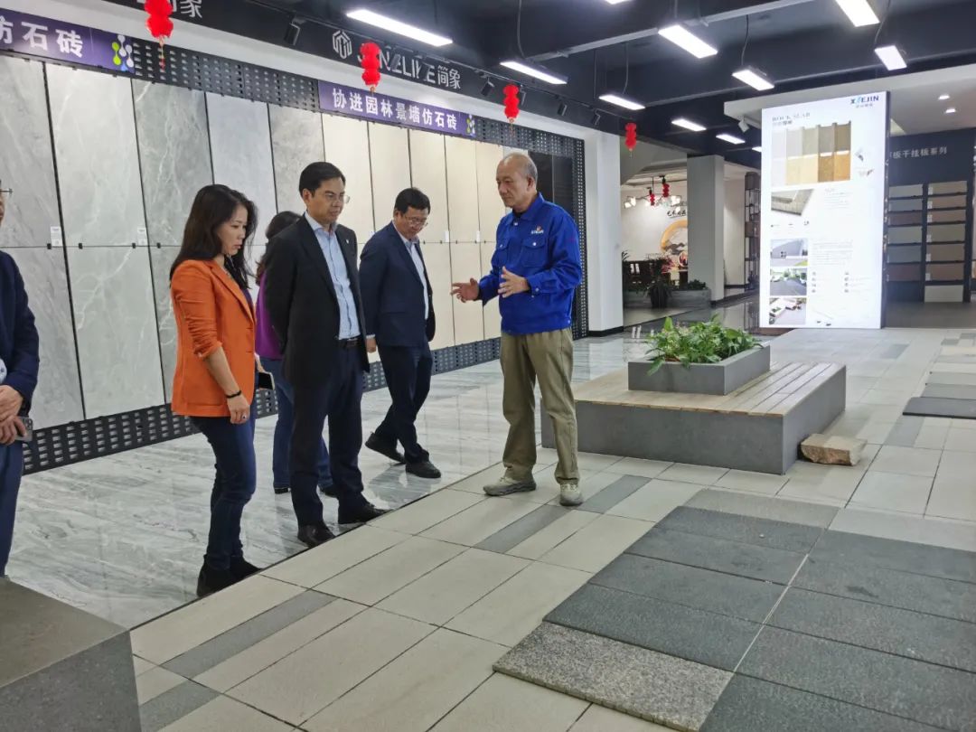 周會(huì)長(zhǎng)一行在南安協(xié)進(jìn)公司董事長(zhǎng)王家助的介紹下一邊了解企業(yè)30年來(lái)的發(fā)展歷程,一邊參觀產(chǎn)品展廳,對(duì)協(xié)進(jìn)陶瓷在大規(guī)格薄板、大板、陶瓷薄板復(fù)合保溫一體板、地鋪石等綠色節(jié)能新產(chǎn)品的研發(fā)生產(chǎn)深入了解。希望利用協(xié)會(huì)在建筑開(kāi)發(fā)產(chǎn)業(yè)鏈上的優(yōu)勢(shì)和資源,通過(guò)此次的商務(wù)考察活動(dòng),尋求開(kāi)拓加拿大和北美市場(chǎng)的合作。
