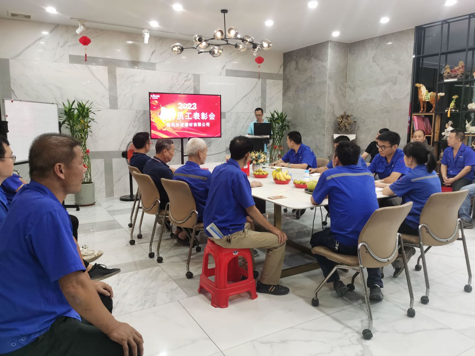 王少華總經理等公司領導為30名2023年度優秀員工頒發獎狀獎品,借此感謝全體協進人一年來的辛勤工作,祝福偉大的祖國繁榮昌盛、國泰民安。